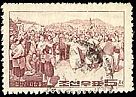 The first issue of 1946 consists of five designs with denominations of 20 chon and 50ch.. The 50ch rose-red and 50ch violet stamps appeared perforated 11, perforated 11 horizontally, perforated 11 vertically, perforated 10 and imperforate.